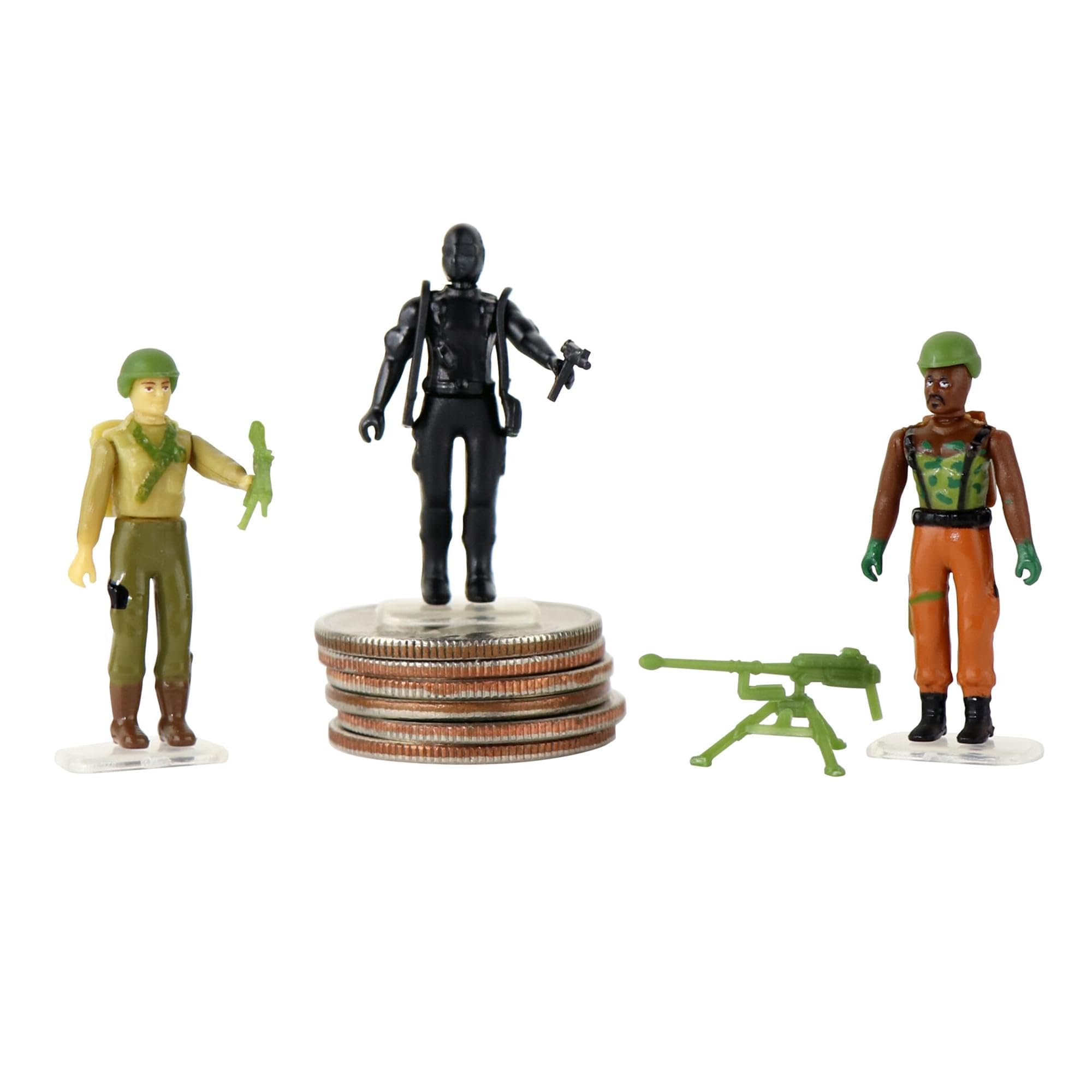- Highly detailed micro action figures measuring 1.25 inches tall with three points of articulation
